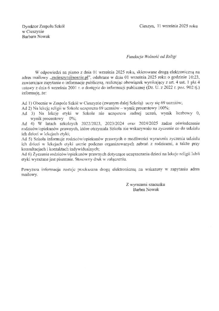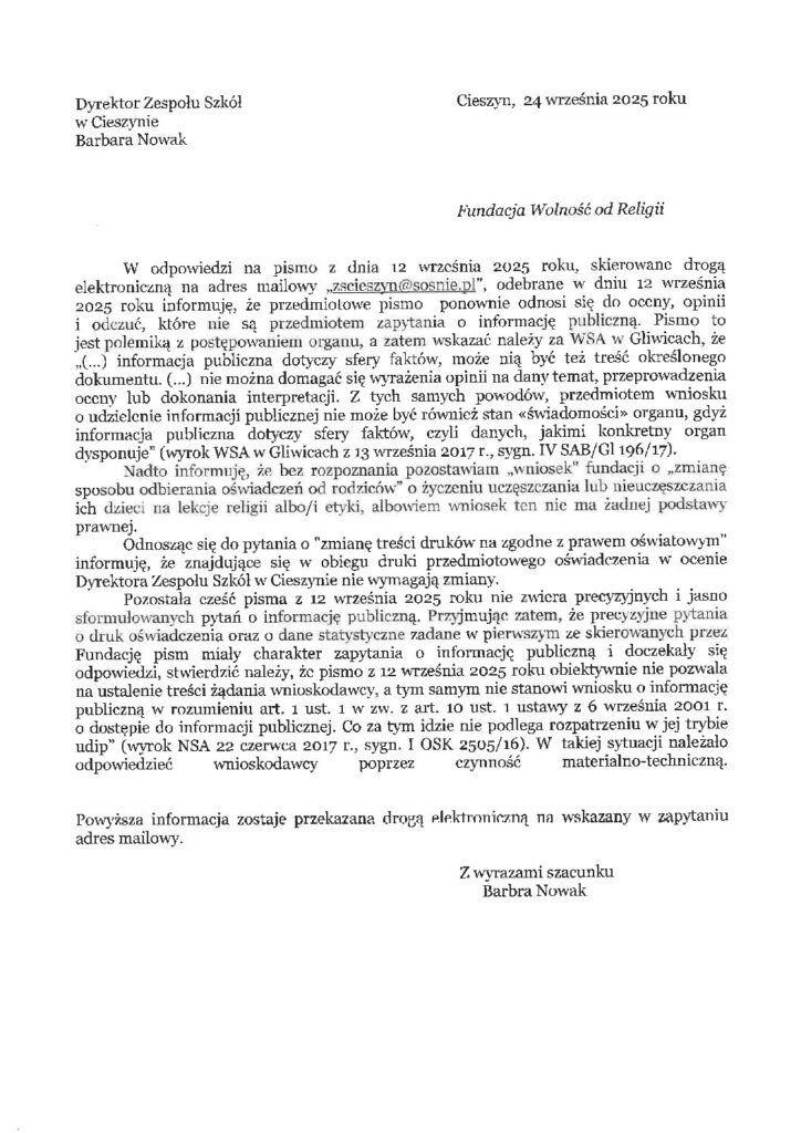 - Pismo-odpowiedź dyrekcji szkoły z dnia 24.09.2025 r.
