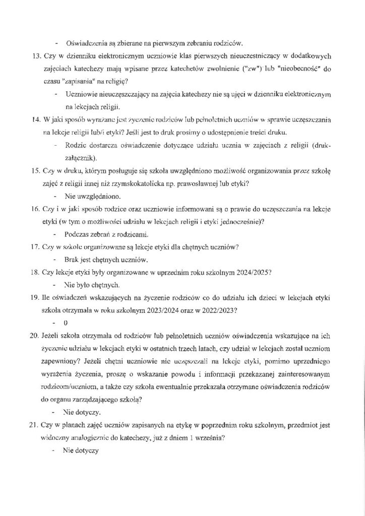 - Czy lekcje etyki były organizowane w uprzednim roku szkolnym 2024/2025?
